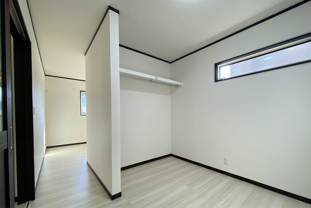 ほどよい広さの洋室は、寝室や趣味室、書斎、ゲストルームなど幅広い使い方に対応しやすい空間です。シンプルに整えた内装と収納により、将来の変化にも柔軟に寄り添いやすくなっています。