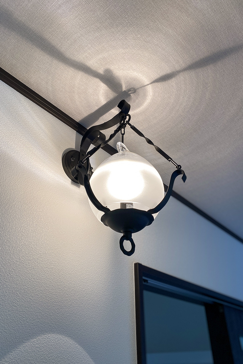 ウォークインクローゼット入口付近に設けたブラケット照明は、機能性だけでなく、空間の雰囲気づくりにもひと役。クラシカルなデザインが壁面のアクセントとなり、何気ない場所にも丁寧な設えを感じさせます。