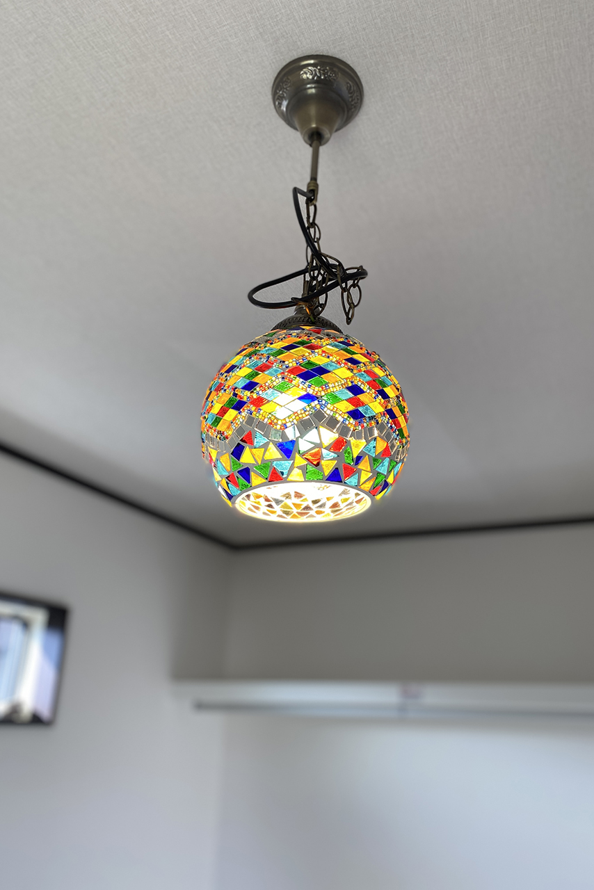 収納で仕切られた洋室の一角には、印象的なペンダントライトを採用。シンプルな空間の中にほどよい華やかさが生まれ、落ち着いた中にも自分らしさを感じられる一室になっています。